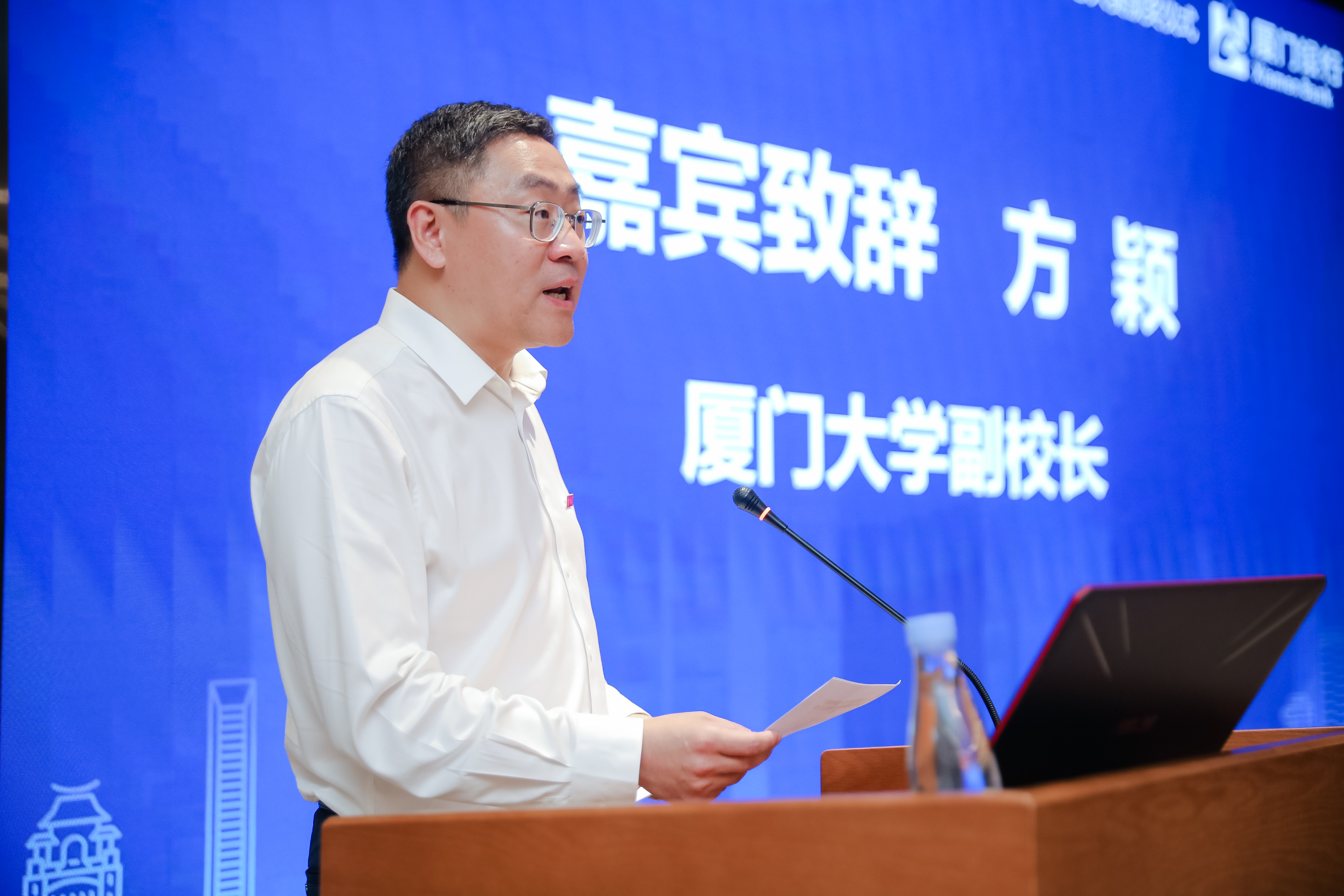 在颁奖仪式上,副校长方颖代表厦门大学对与会领导和专家学者表示诚挚欢迎。他指出,青年是两岸交流的主力军,也是厚植两岸关系发展的社会基础和前进的动力。本次校企合作办赛是一次发挥双方各自优势的成功实践。期待两岸兄弟院校以及各单位能继续为大赛提供支持和指导,把海峡两岸大学生金融创新创意大赛办成具有影响力和示范性的品牌赛事,在为两岸关系和平发展增添新生力量、注入青春活力上积极贡献厦大力量。